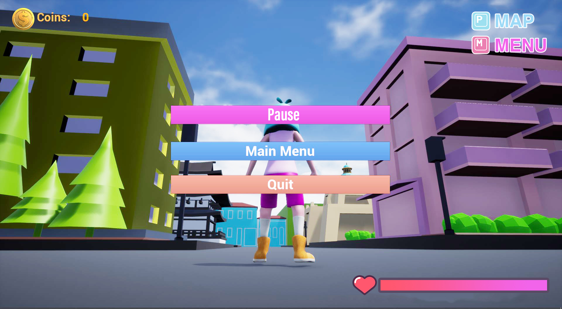 It is a maze game, the player can find the coins and key in this game. Press the space bar to jump. Press "M" on the keyboard to pause the game. or exit the game. Press "P" on the keyboard to check the map. You can see where you are by jumping above. 20% of the damage will be taken when encountering a trap. (If your HP becomes 0 will be forced to jump to the Main Menu page) This is a maze game to find an exit. Victory conditions: Find the key or coins.