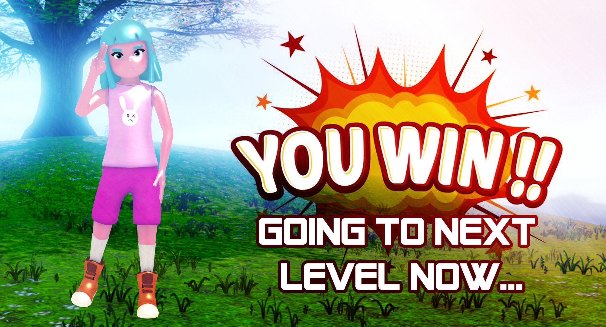 In the first level, the bunny is a symbolic NPC encountered in the first level. It can speak to the player and stands in front of a locked door, acting as a guide and gatekeeper. The bunny asks the player to find its key, encouraging exploration and teaching basic game mechanics such as collecting gold coins and keys. Its friendly appearance contrasts with the darker themes of the game, symbolizing innocence and lost childhood.